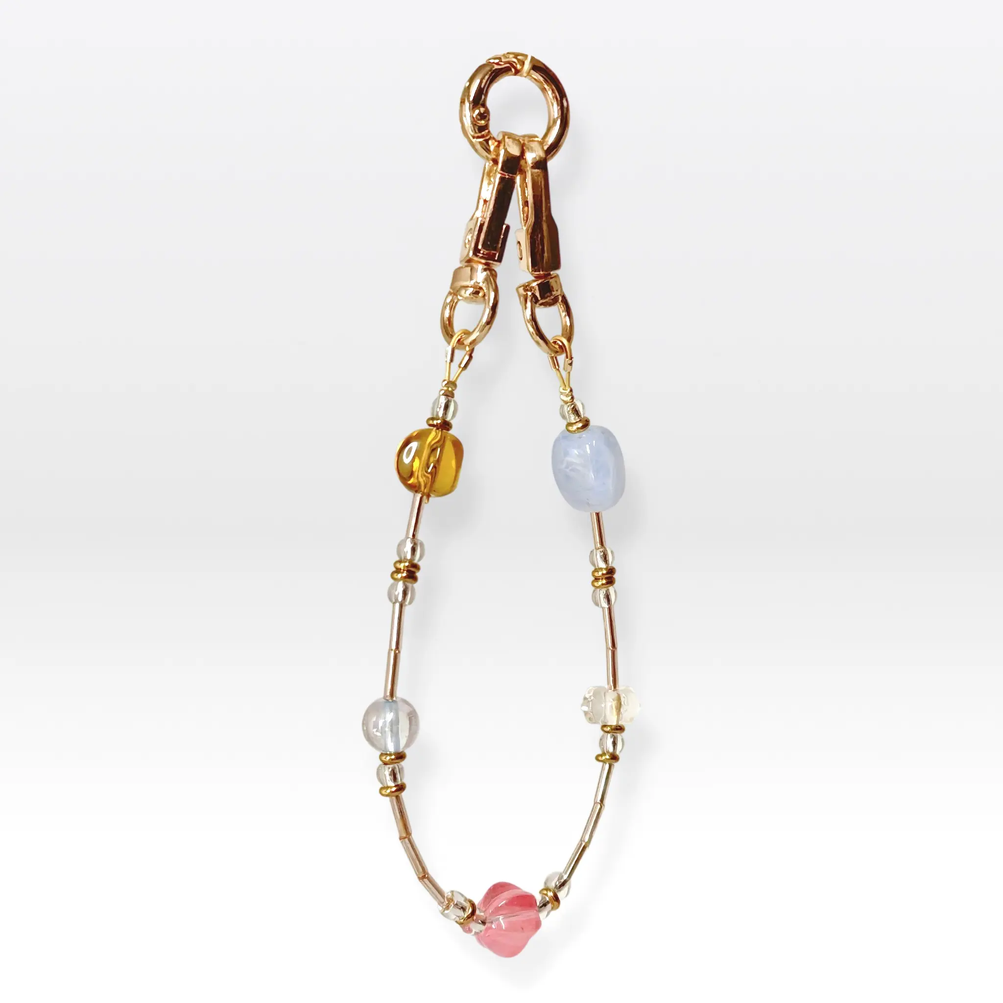 The pastel garden short Chain is a handcrafted phone chain made with Glass Beads, thoughtfully designed to reflect Elegant and gentle.